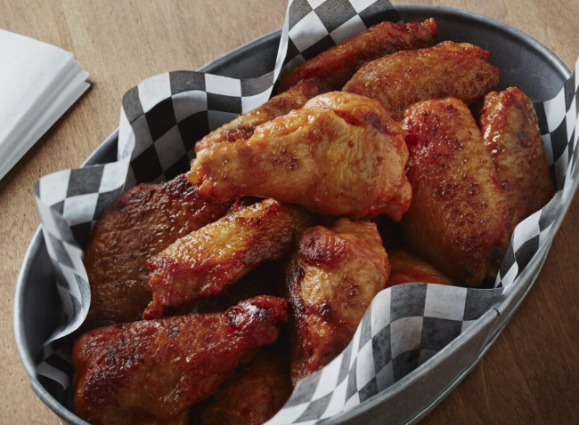 Ailes poulet assaisonnées, panées, pré-frites, cuites avec isolat de protéine de soya, classe B, Congelées (Code 08760)